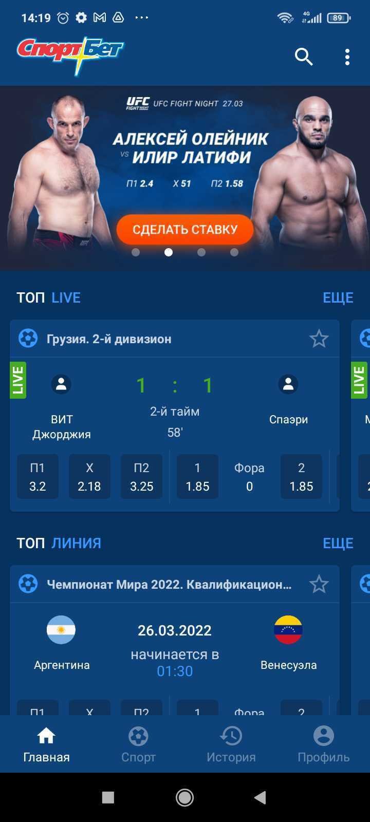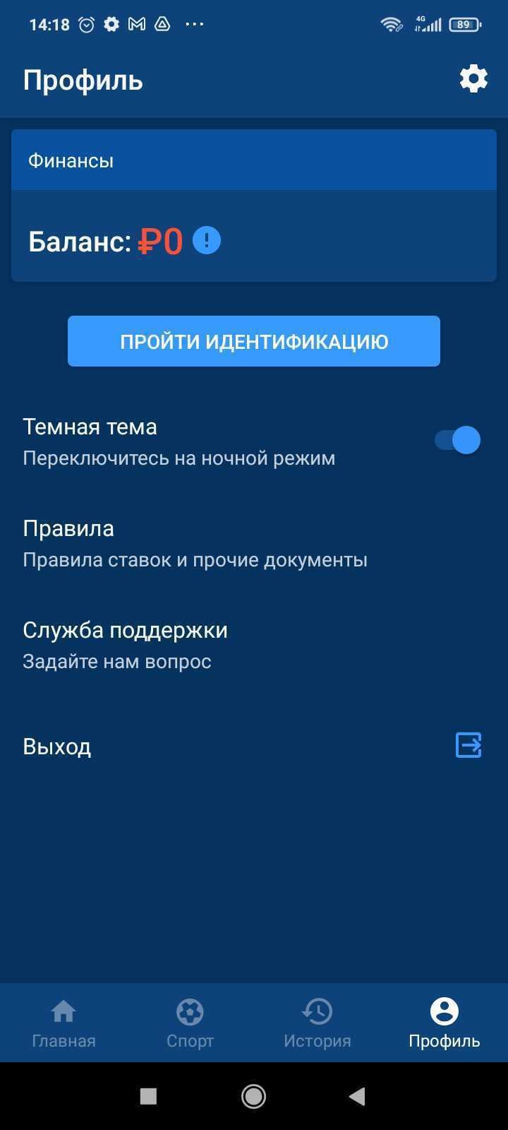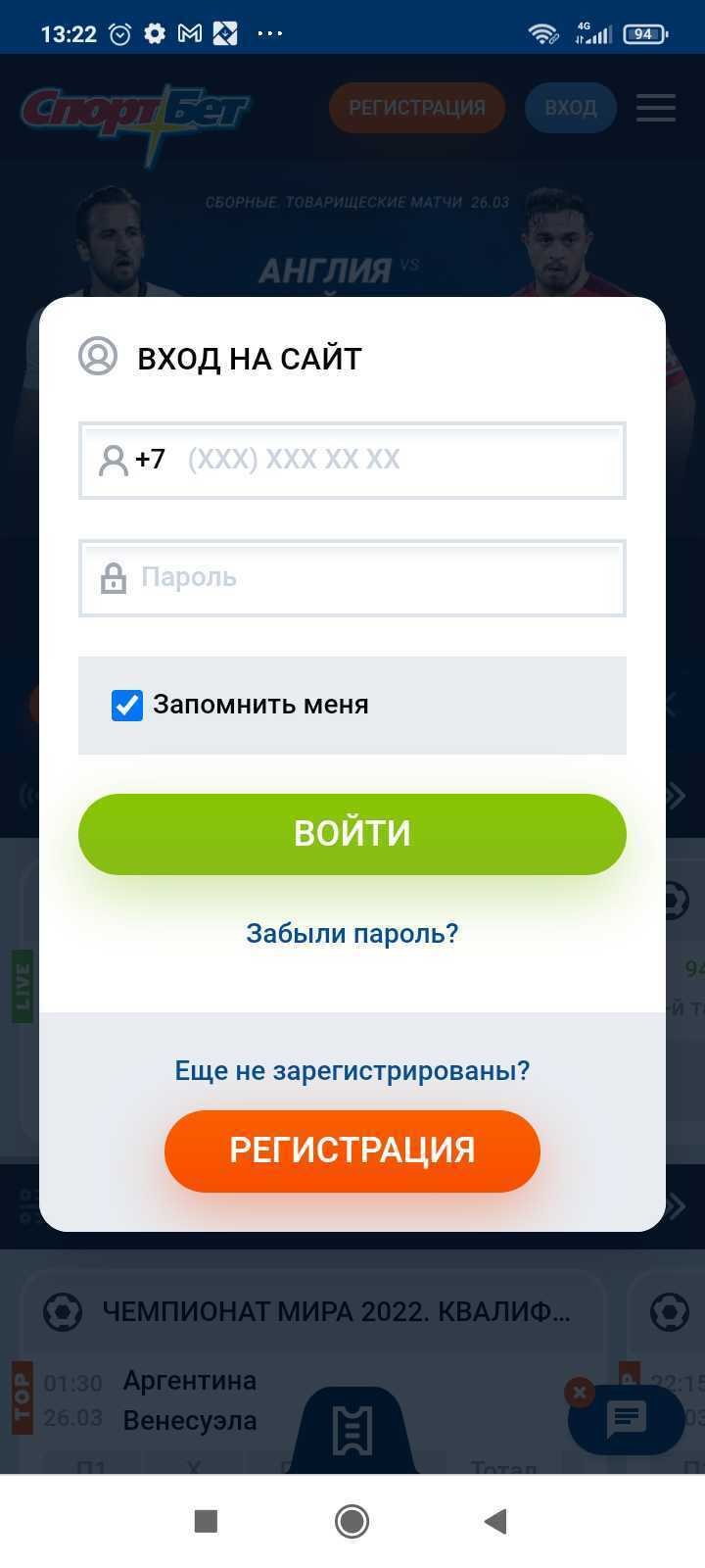 Вход в личный кабинет в мобильном приложении «СпортБет» (Mostbet)